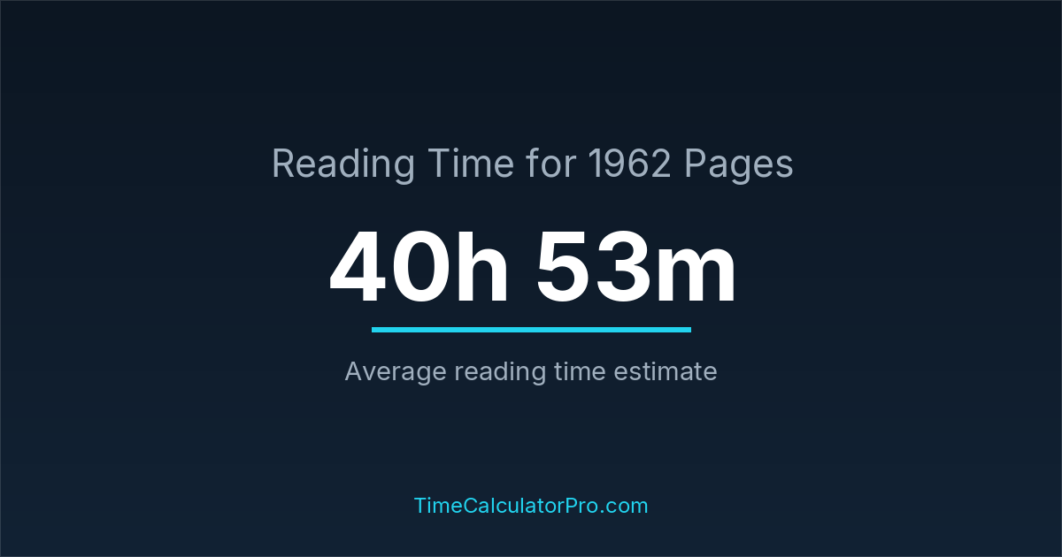 If you read at an average speed of 200 words per minute, reading 1962 pages will take approximately 40 hours and 53 minutes. This estimate assumes around 250 words per page, which is typical for most books.
