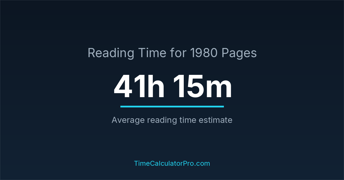If you read at an average speed of 200 words per minute, reading 1980 pages will take approximately 41 hours and 15 minutes. This estimate assumes around 250 words per page, which is typical for most books.