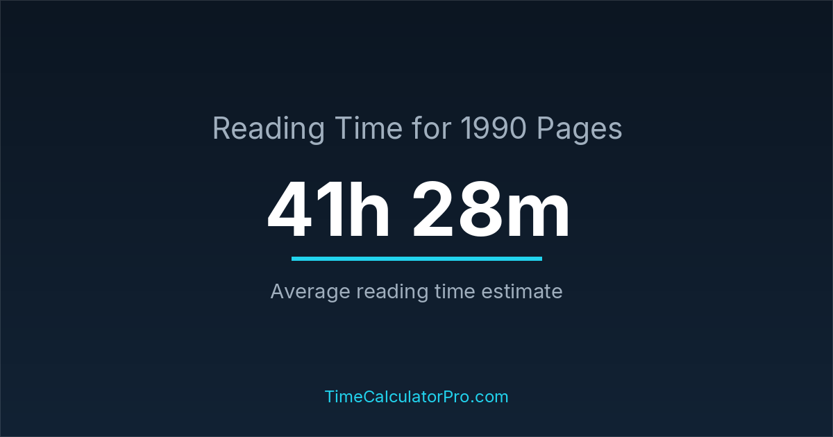 If you read at an average speed of 200 words per minute, reading 1990 pages will take approximately 41 hours and 28 minutes. This estimate assumes around 250 words per page, which is typical for most books.