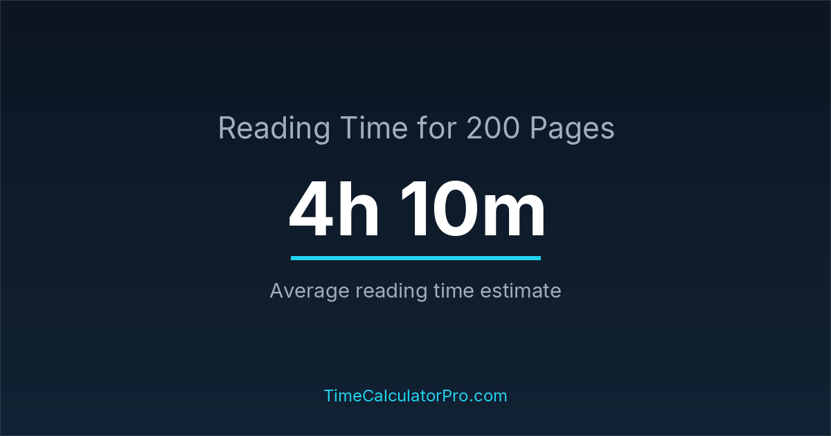 Reading 200 pages takes about 4 hours and 10 minutes.