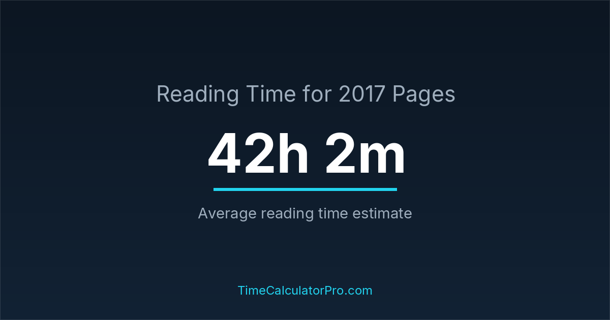 A reading time calculator helps estimate how long it will take to complete 2017 pages before you even begin reading, allowing you to plan your time more effectively.