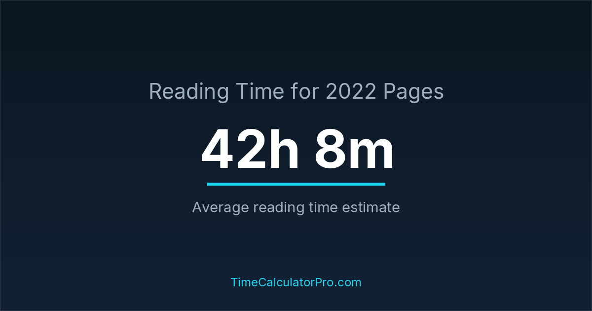 If you read at an average speed of 200 words per minute, reading 2022 pages will take approximately 42 hours and 8 minutes. This estimate assumes around 250 words per page, which is typical for most books.