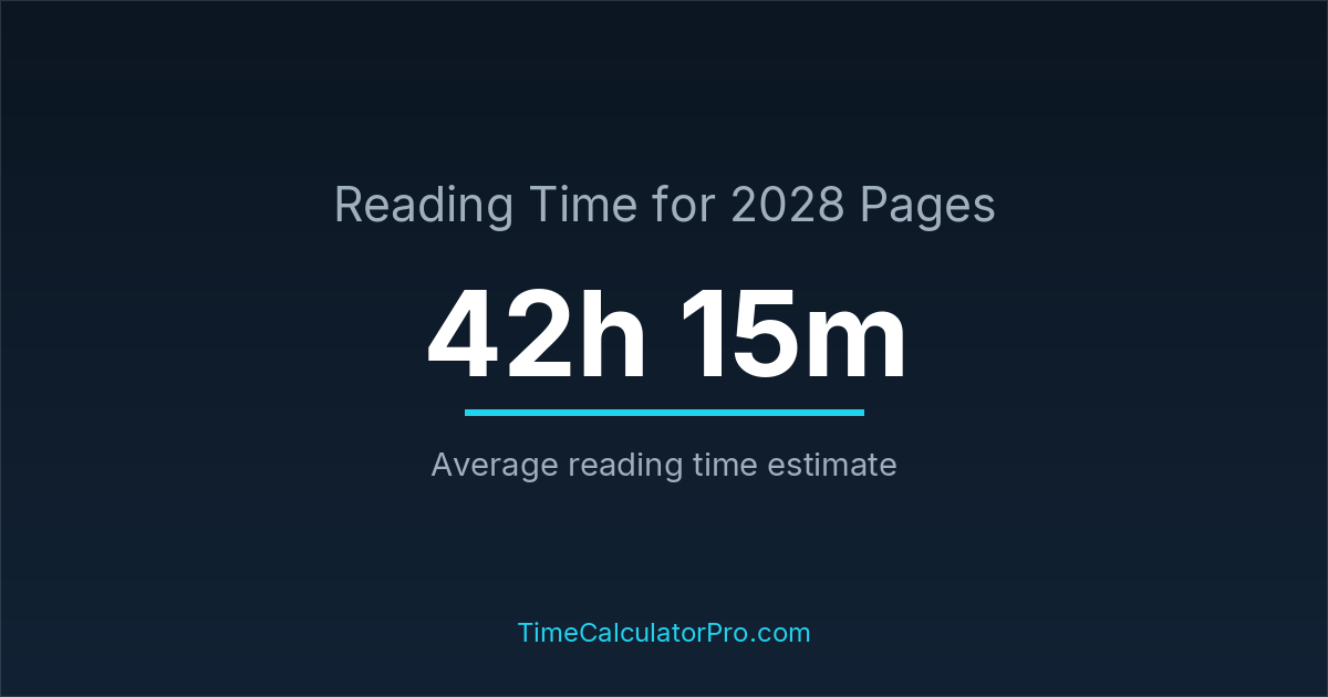 If you read at an average speed of 200 words per minute, reading 2028 pages will take approximately 42 hours and 15 minutes. This estimate assumes around 250 words per page, which is typical for most books.