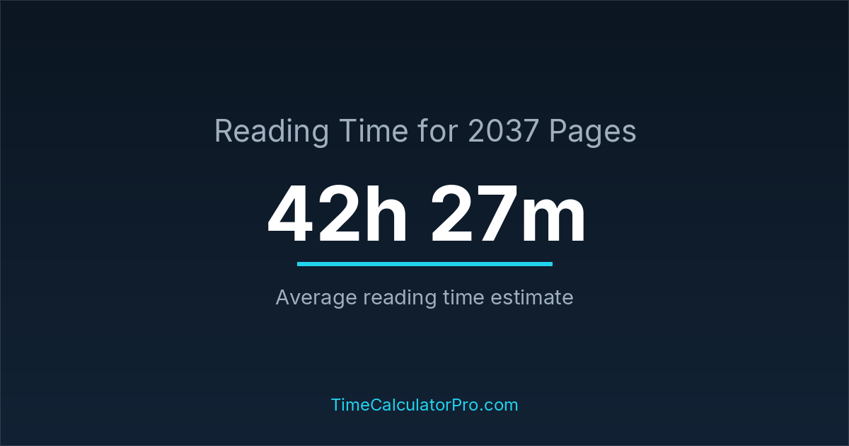 The average reading time for 2037 pages is about 42 hours and 27 minutes, but this can change depending on the difficulty of the text.