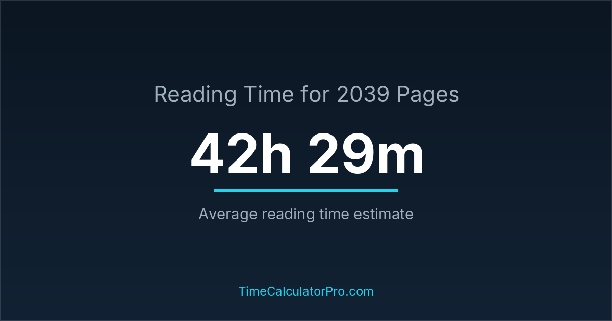 The estimated time to read 2039 pages is approximately 42 hours and 29 minutes for an average adult reader.