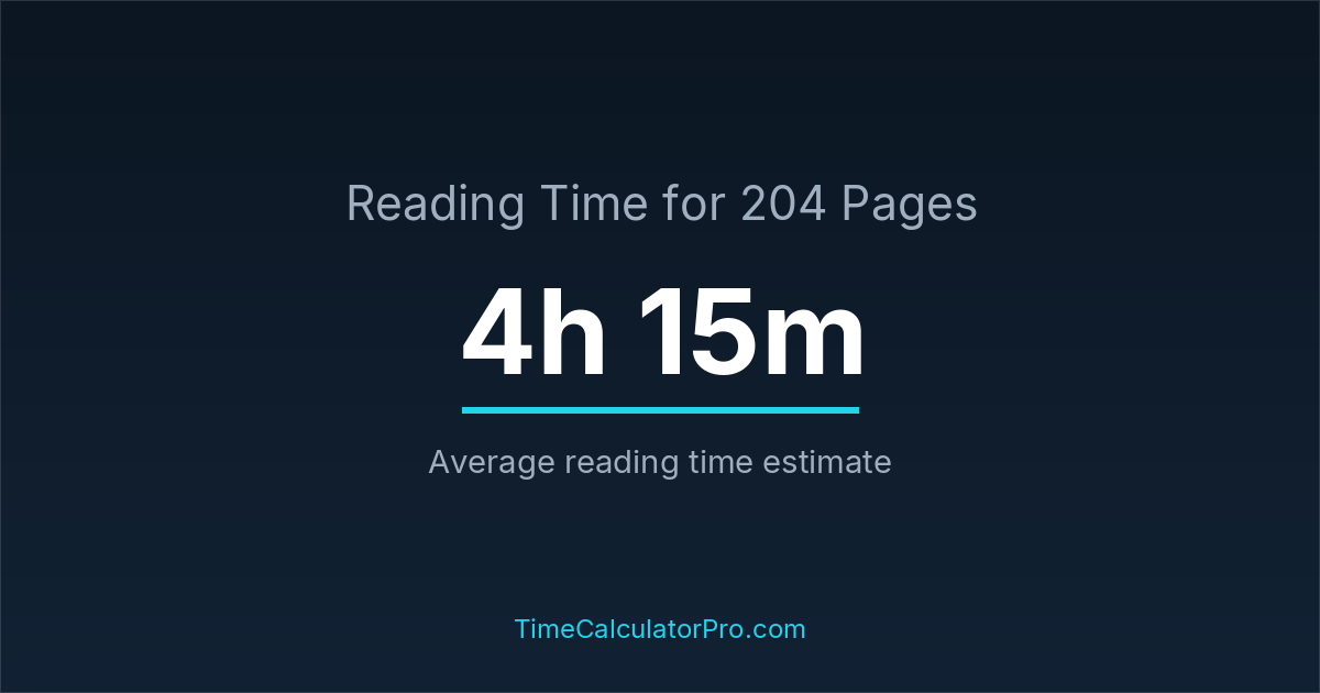 The estimated time to read 204 pages is approximately 4 hours and 15 minutes for an average adult reader.