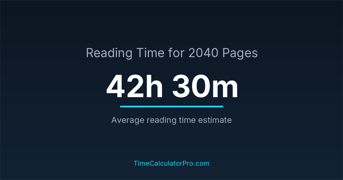 If you are wondering how long it takes to read 2040 pages, the estimated reading time is roughly 42 hours and 30 minutes based on common reading speed averages.