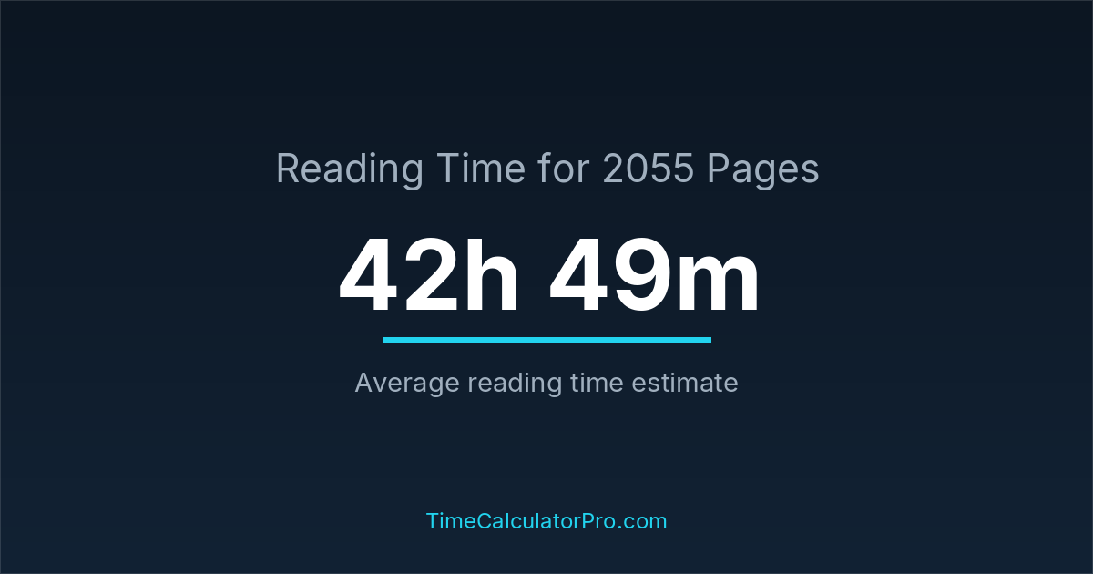 If you are wondering how long it takes to read 2055 pages, the estimated reading time is roughly 42 hours and 49 minutes based on common reading speed averages.