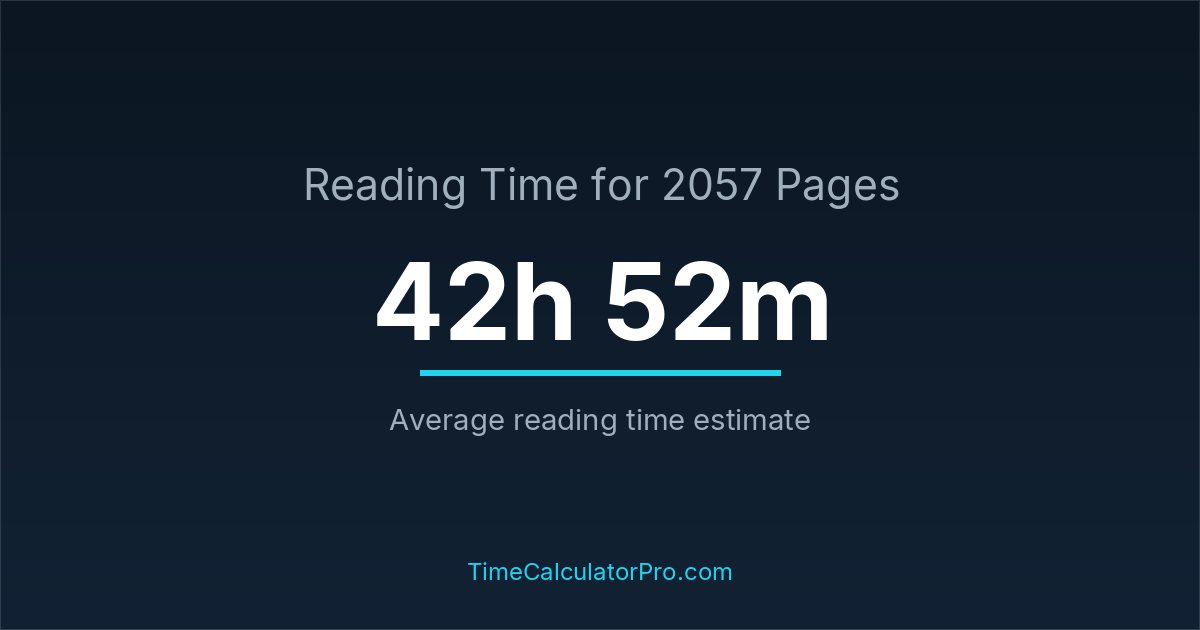 The average reading time for 2057 pages is about 42 hours and 52 minutes, but this can change depending on the difficulty of the text.