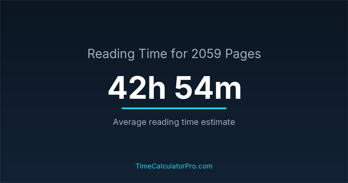 Based on standard reading speeds, reading 2059 pages would take roughly 42 hours and 54 minutes under normal conditions.