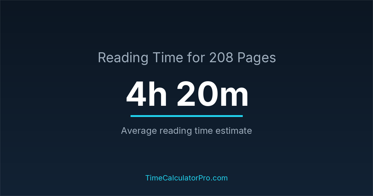 If you are wondering how long it takes to read 208 pages, the estimated reading time is roughly 4 hours and 20 minutes based on common reading speed averages.
