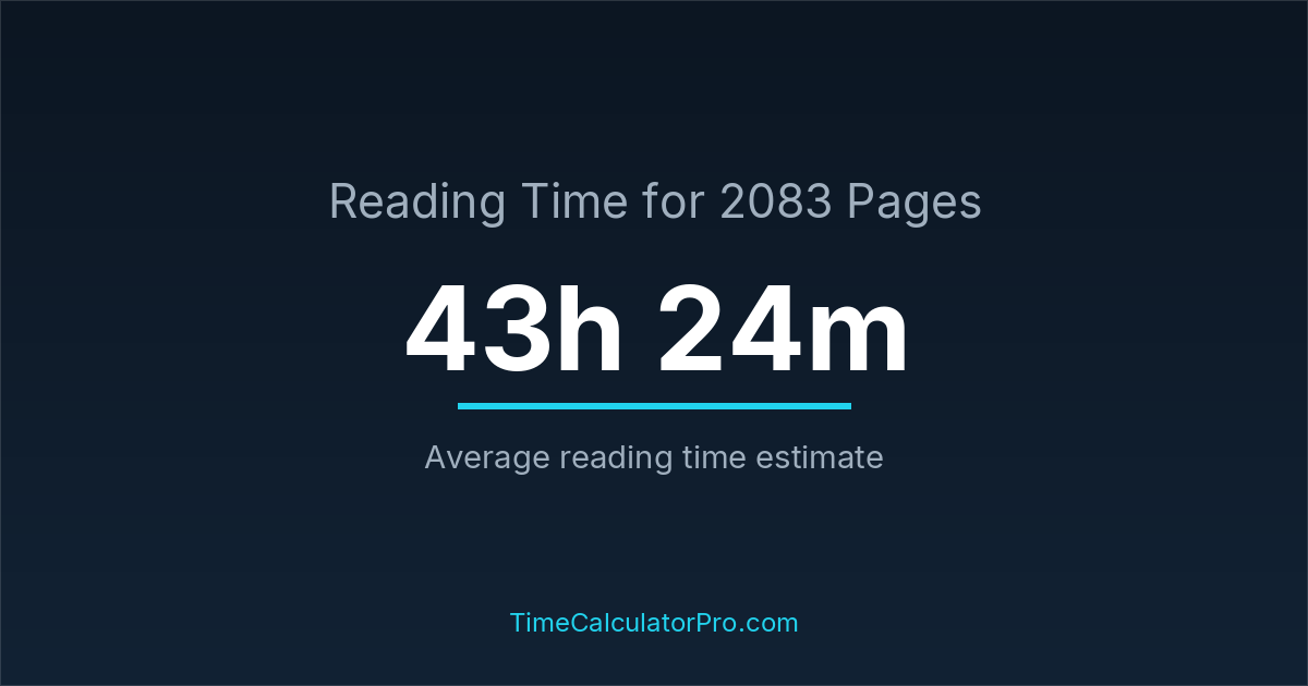 Reading 2083 pages usually takes approximately 43 hours and 24 minutes for the average reader, though this can vary depending on concentration and reading habits.