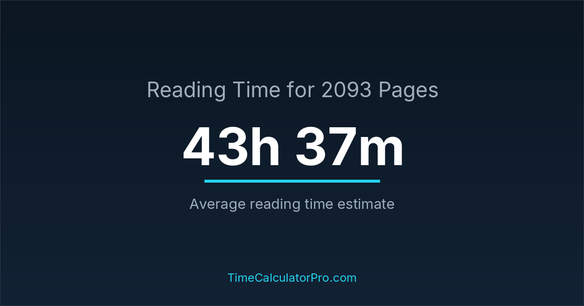 The estimated time to read 2093 pages is approximately 43 hours and 37 minutes for an average adult reader.