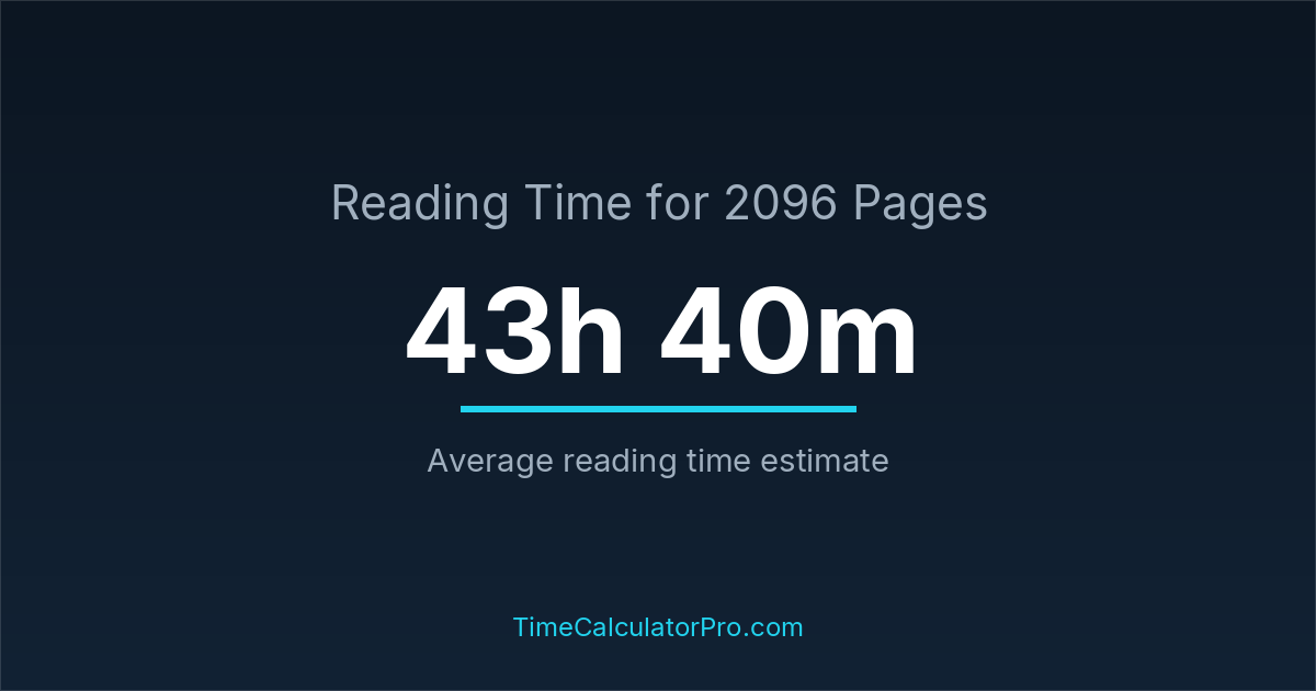 A reading time calculator helps estimate how long it will take to complete 2096 pages before you even begin reading, allowing you to plan your time more effectively.