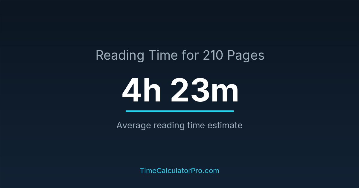 The average reading time for 210 pages is about 4 hours and 23 minutes, but this can change depending on the difficulty of the text.