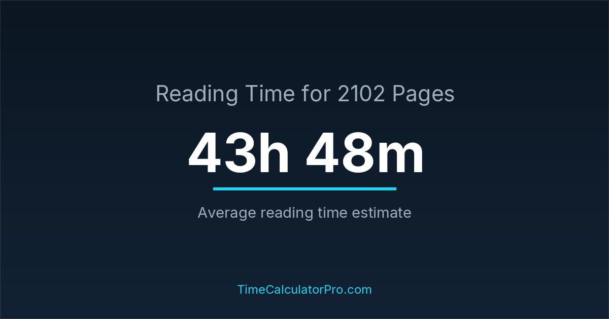 Many readers ask how long it takes to read 2102 pages, and the answer is typically around 43 hours and 48 minutes depending on reading speed.