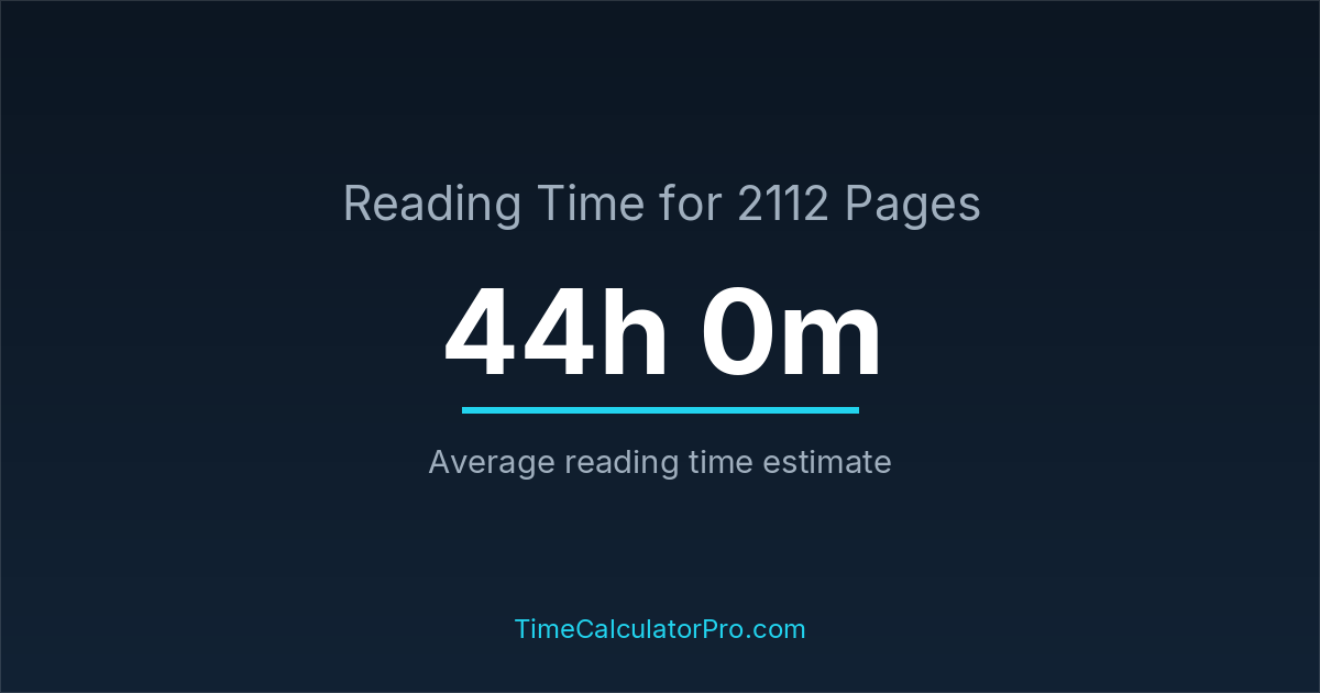 Estimating how long it takes to read 2112 pages can help you plan your reading schedule, with an average time of 44 hours and 0 minutes.