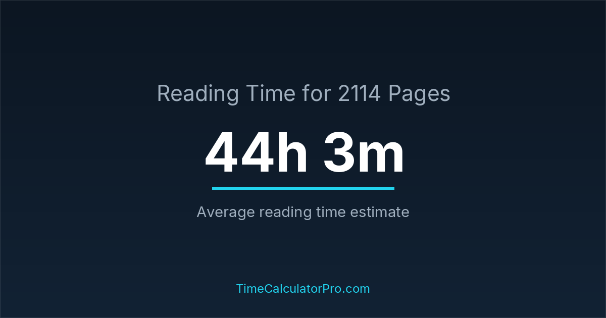 Many readers ask how long it takes to read 2114 pages, and the answer is typically around 44 hours and 3 minutes depending on reading speed.