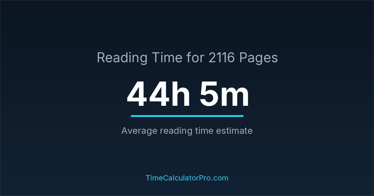 A reading time calculator helps estimate how long it will take to complete 2116 pages before you even begin reading, allowing you to plan your time more effectively.