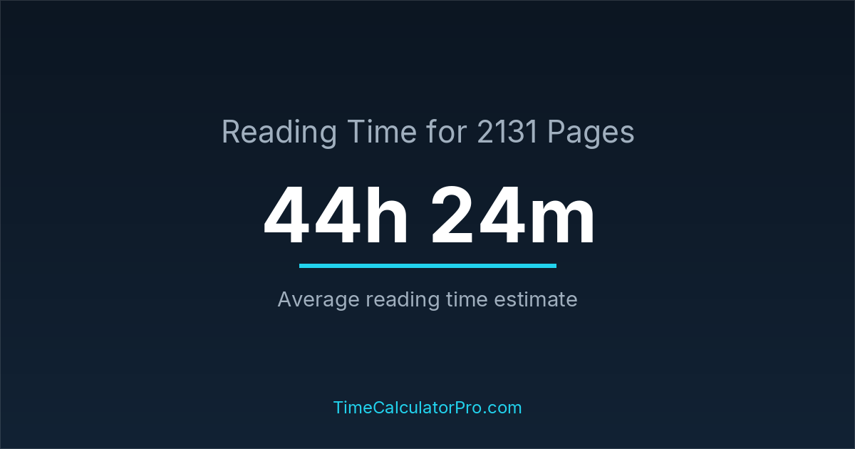 The average reading time for 2131 pages is about 44 hours and 24 minutes, but this can change depending on the difficulty of the text.