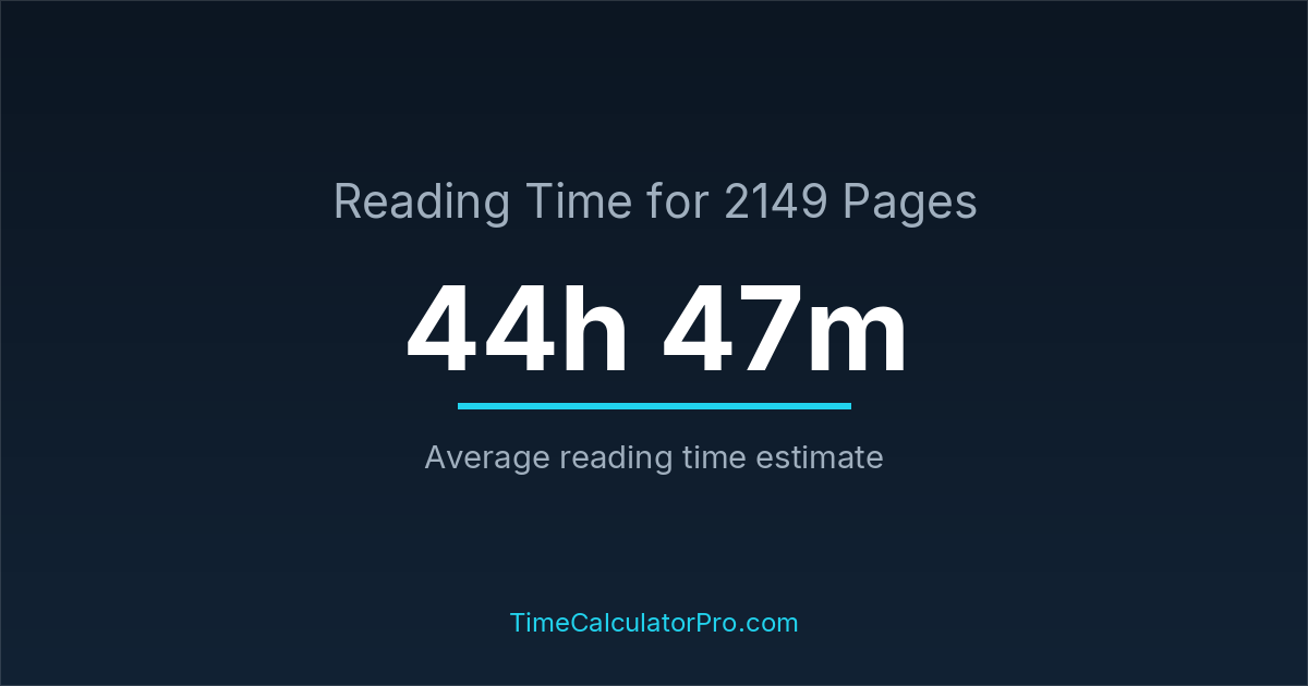 Based on standard reading speeds, reading 2149 pages would take roughly 44 hours and 47 minutes under normal conditions.