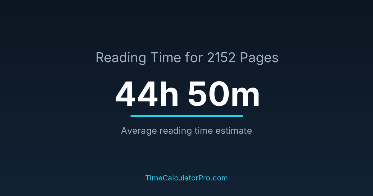 The average reading time for 2152 pages is about 44 hours and 50 minutes, but this can change depending on the difficulty of the text.