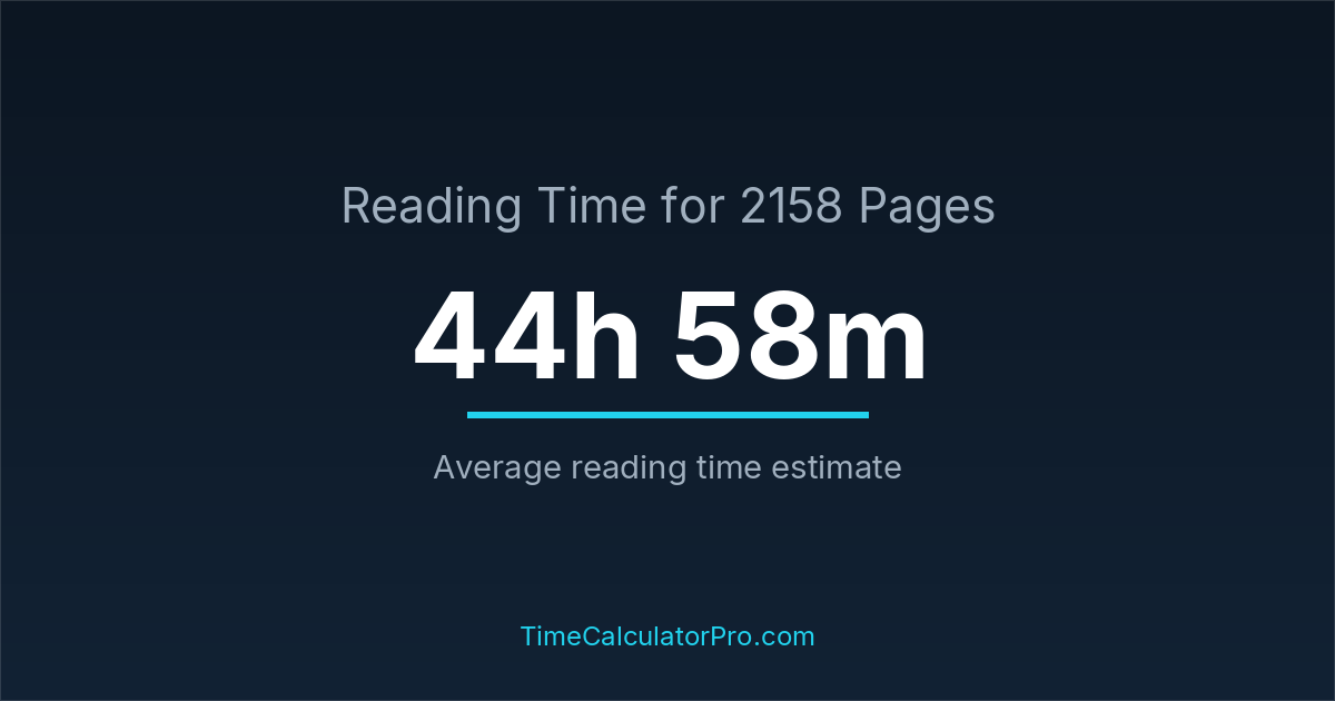 A reading time calculator helps estimate how long it will take to complete 2158 pages before you even begin reading, allowing you to plan your time more effectively.