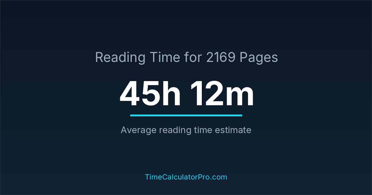 If you are wondering how long it takes to read 2169 pages, the estimated reading time is roughly 45 hours and 12 minutes based on common reading speed averages.