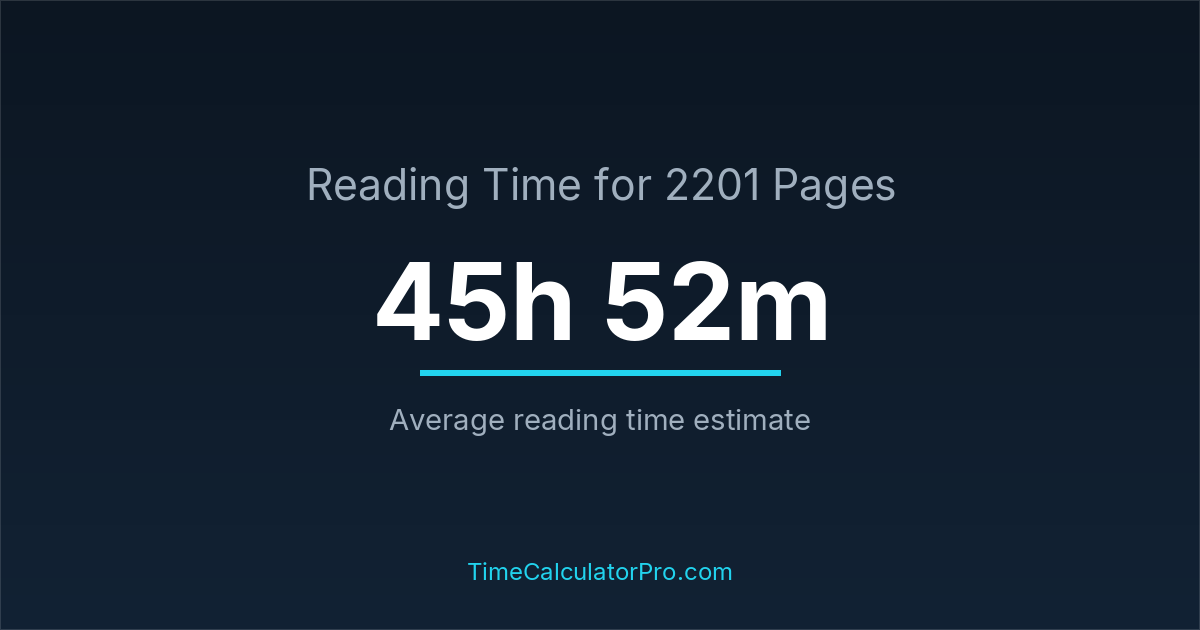 Many readers ask how long it takes to read 2201 pages, and the answer is typically around 45 hours and 52 minutes depending on reading speed.