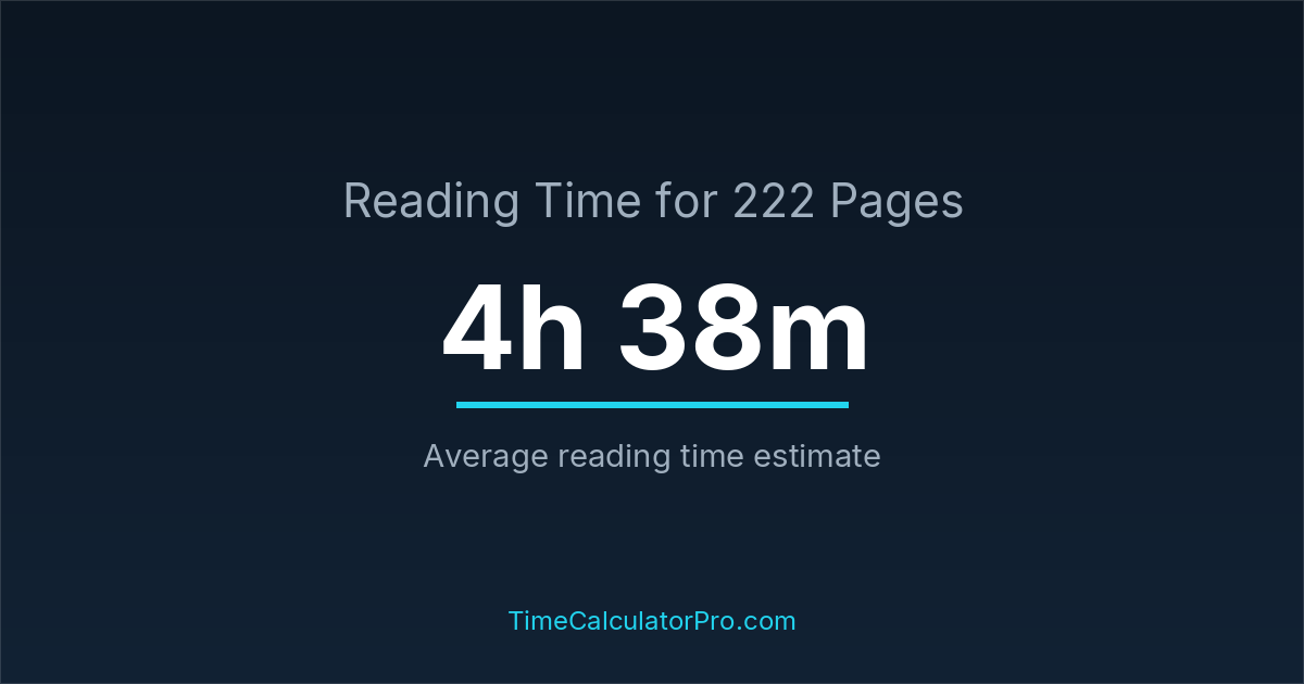 Reading 222 pages usually takes approximately 4 hours and 38 minutes for the average reader, though this can vary depending on concentration and reading habits.
