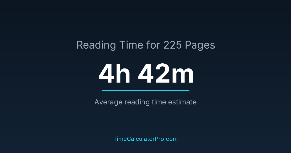 The average reading time for 225 pages is about 4 hours and 42 minutes, but this can change depending on the difficulty of the text.