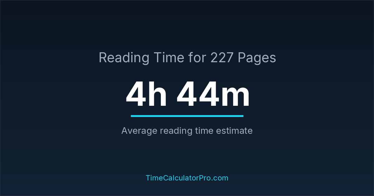 Estimating how long it takes to read 227 pages can help you plan your reading schedule, with an average time of 4 hours and 44 minutes.