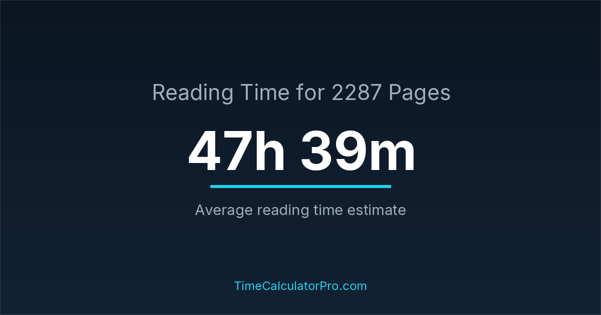 Reading 2287 pages takes about 47 hours and 39 minutes.