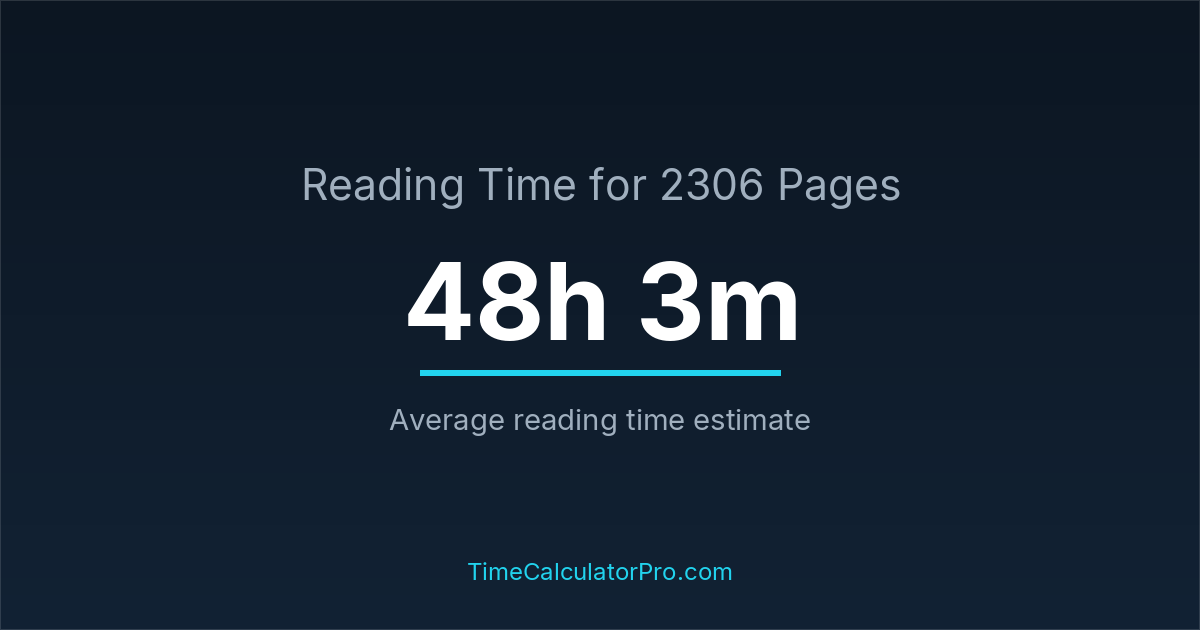 The estimated time to read 2306 pages is approximately 48 hours and 3 minutes for an average adult reader.