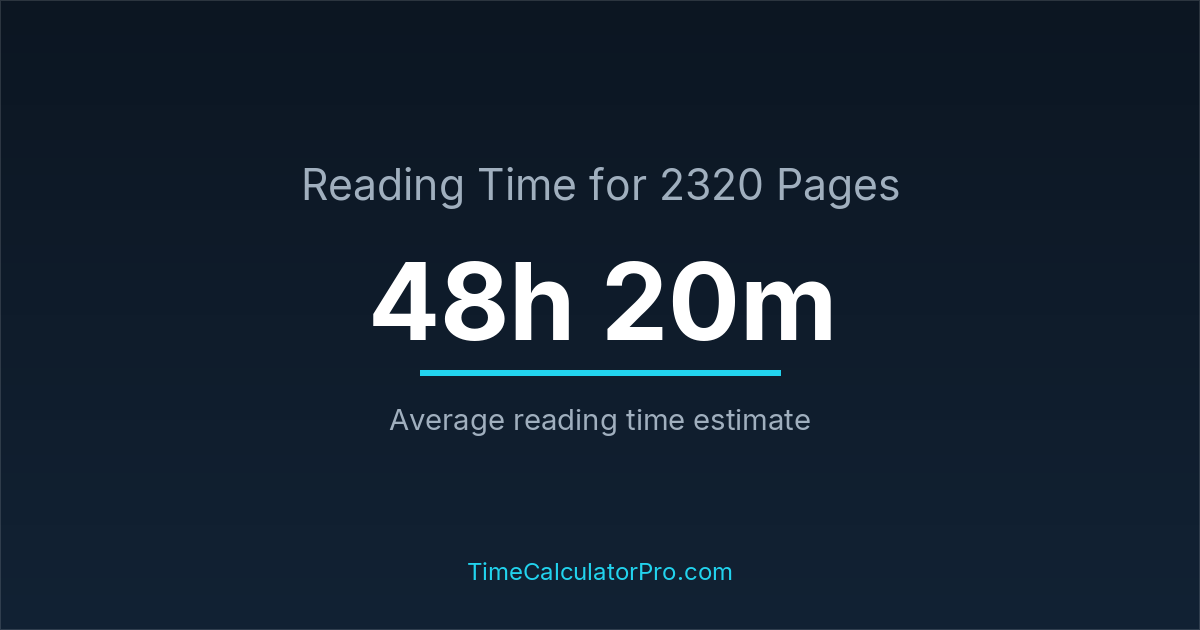 Reading 2320 pages usually takes approximately 48 hours and 20 minutes for the average reader, though this can vary depending on concentration and reading habits.