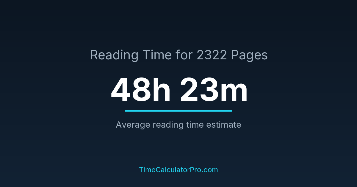 Based on standard reading speeds, reading 2322 pages would take roughly 48 hours and 23 minutes under normal conditions.