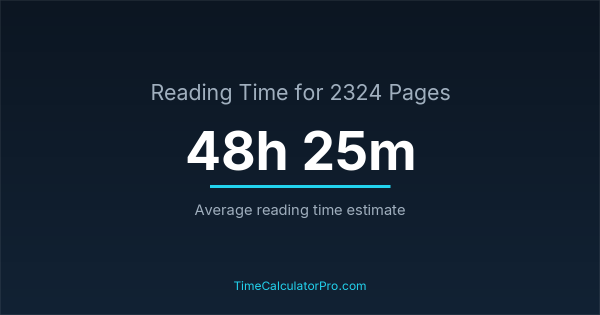 Based on standard reading speeds, reading 2324 pages would take roughly 48 hours and 25 minutes under normal conditions.