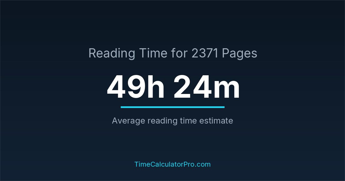 The average reading time for 2371 pages is about 49 hours and 24 minutes, but this can change depending on the difficulty of the text.