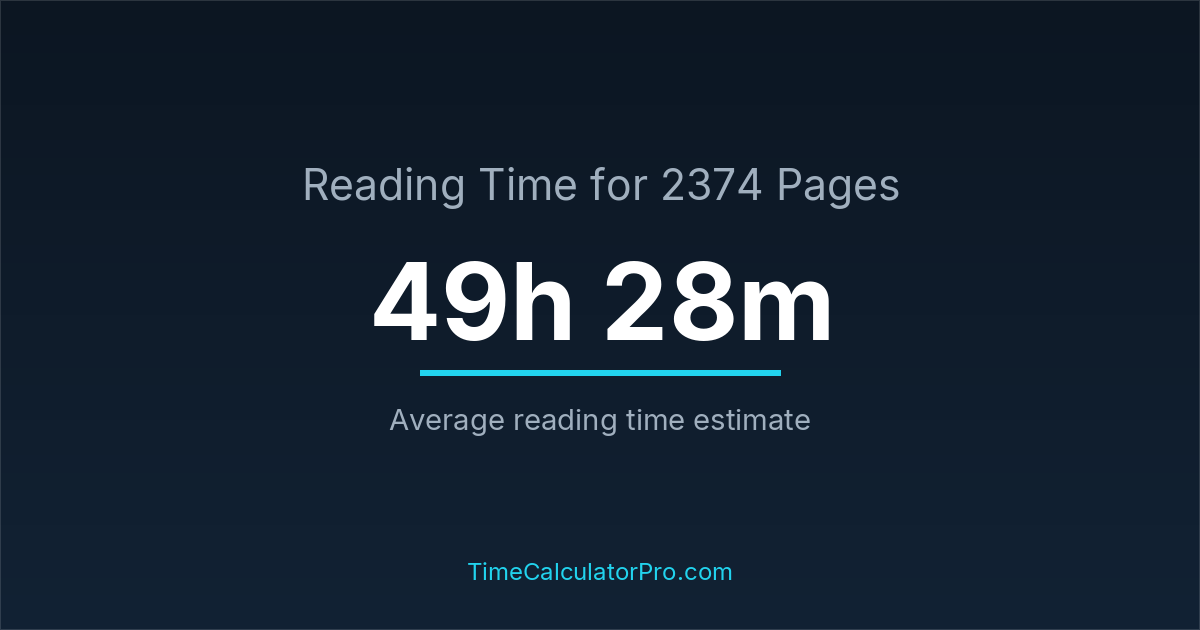 Reading 2374 pages takes about 49 hours and 28 minutes.