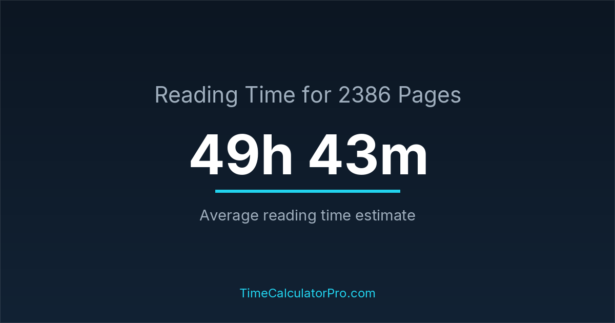 If you are wondering how long it takes to read 2386 pages, the estimated reading time is roughly 49 hours and 43 minutes based on common reading speed averages.