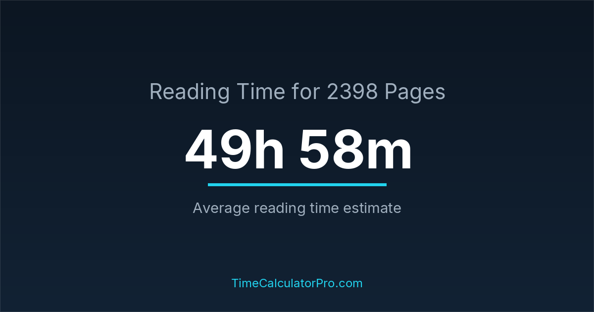 Reading 2398 pages takes about 49 hours and 58 minutes.