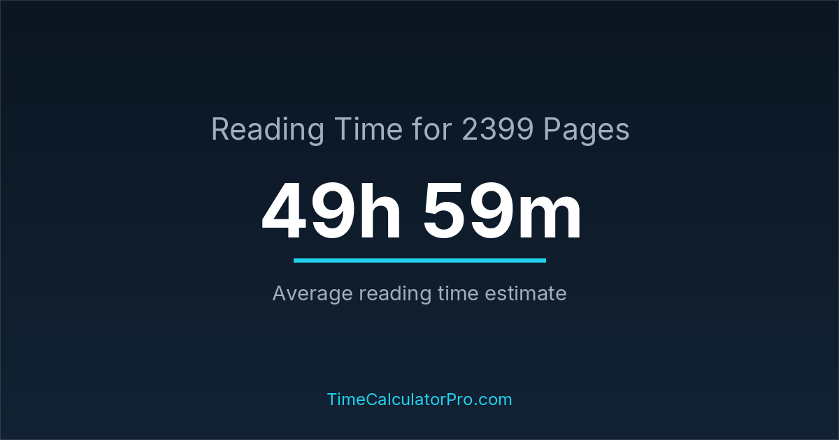Reading 2399 pages usually takes approximately 49 hours and 59 minutes for the average reader, though this can vary depending on concentration and reading habits.