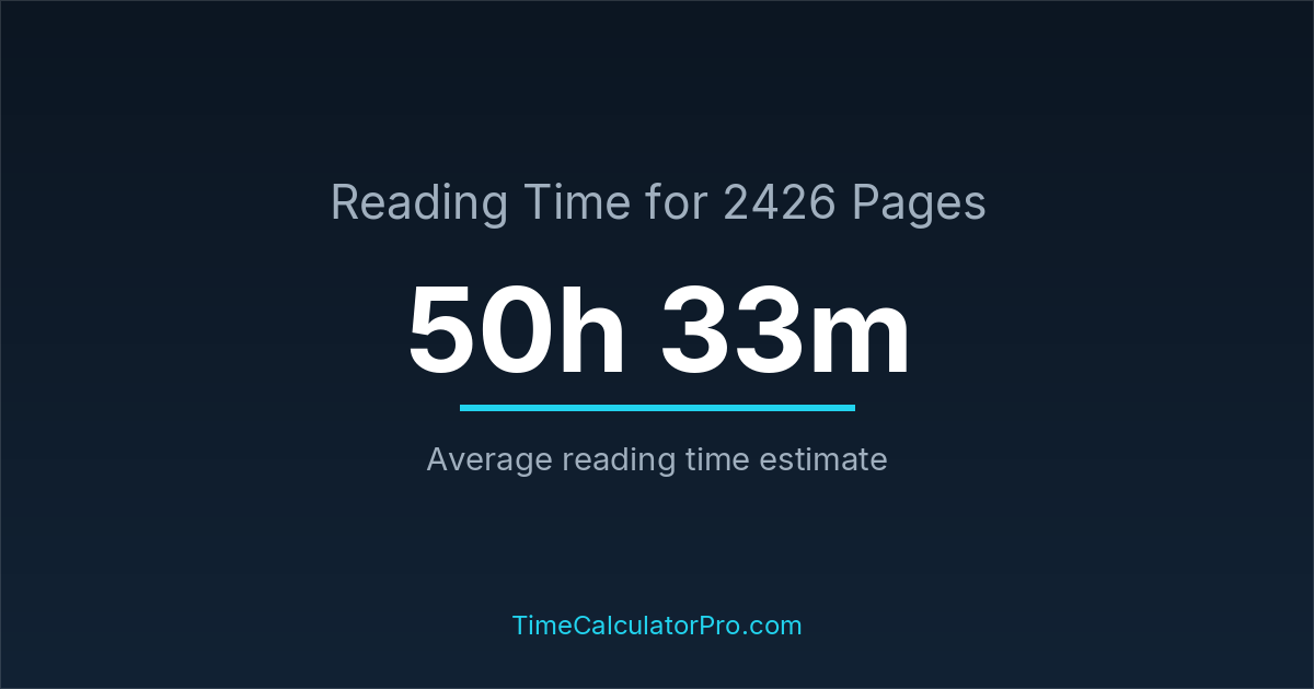 Reading 2426 pages usually takes approximately 50 hours and 33 minutes for the average reader, though this can vary depending on concentration and reading habits.