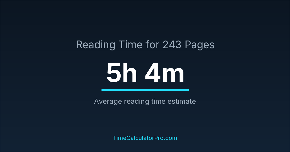 Reading 243 pages takes about 5 hours and 4 minutes.