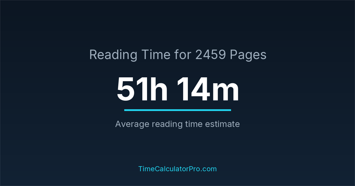 Using a reading time calculator, you can estimate that 2459 pages will take around 51 hours and 14 minutes to complete.