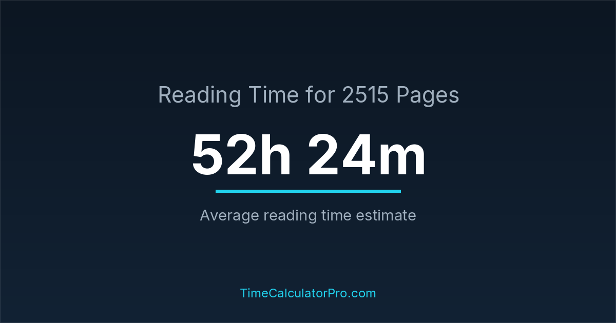 Based on standard reading speeds, reading 2515 pages would take roughly 52 hours and 24 minutes under normal conditions.
