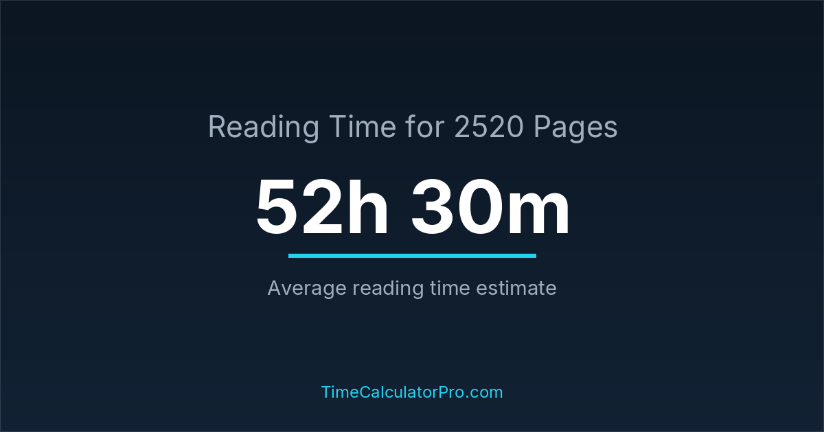 Reading 2520 pages usually takes approximately 52 hours and 30 minutes for the average reader, though this can vary depending on concentration and reading habits.