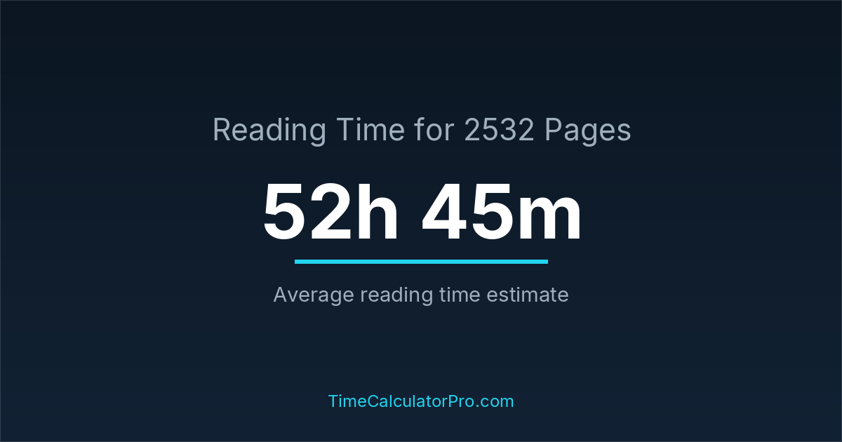 The average reading time for 2532 pages is about 52 hours and 45 minutes, but this can change depending on the difficulty of the text.