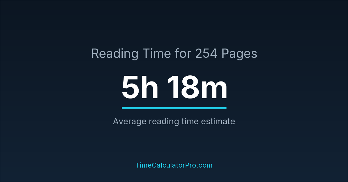 If you read at an average speed of 200 words per minute, reading 254 pages will take approximately 5 hours and 18 minutes. This estimate assumes around 250 words per page, which is typical for most books.