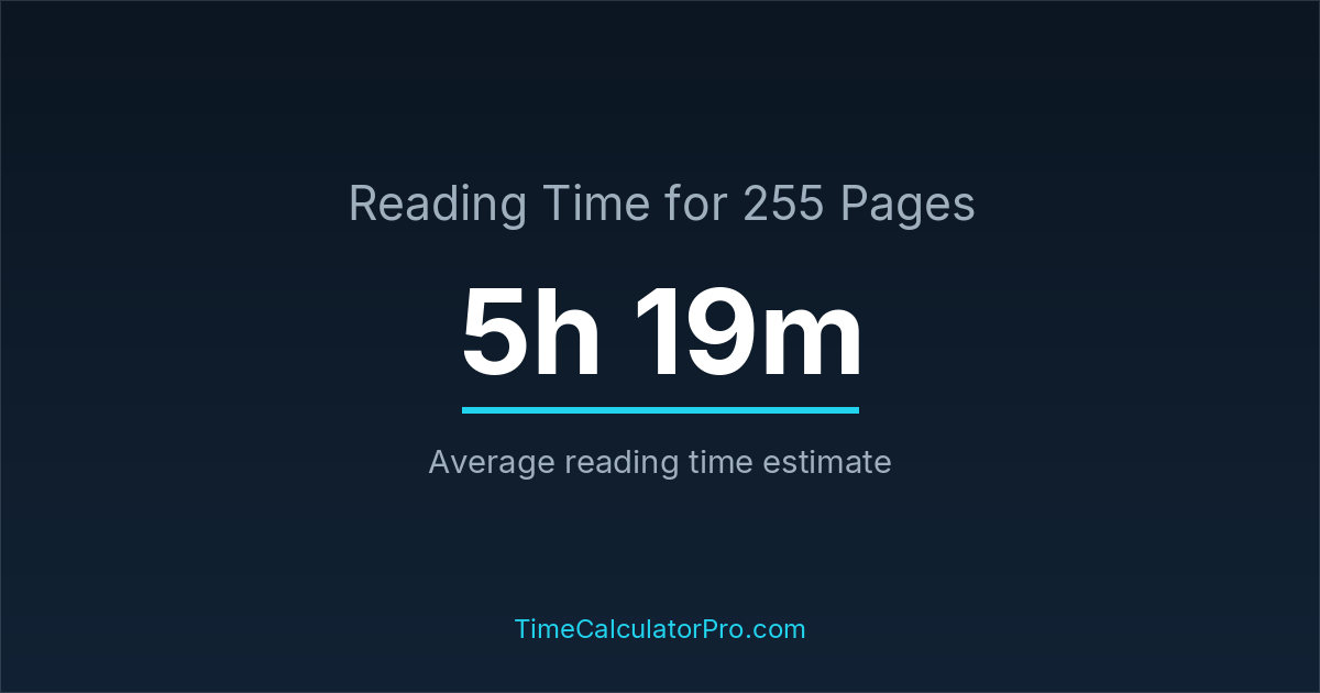 The estimated time to read 255 pages is approximately 5 hours and 19 minutes for an average adult reader.